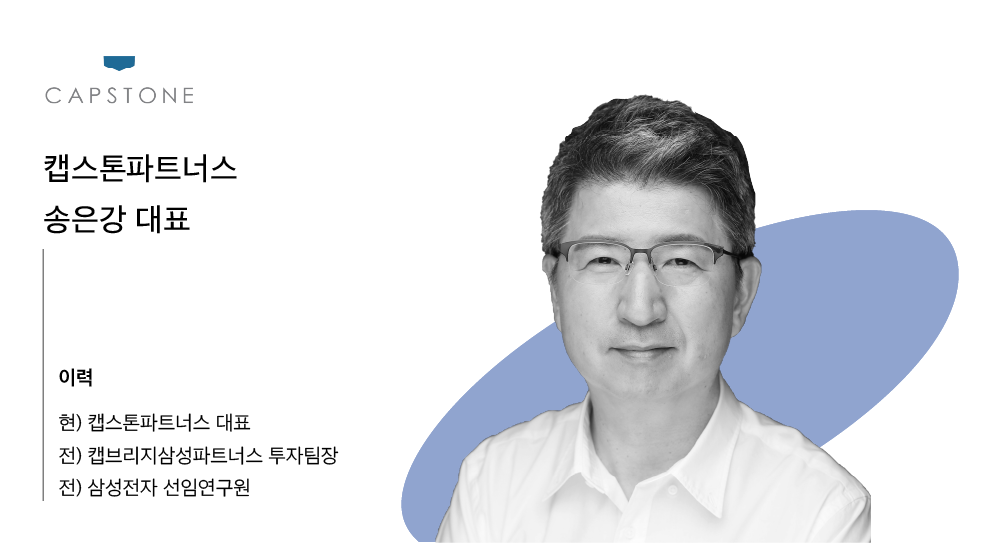 송은강 멘토는 ICT 분야의 스타트업에 주로 투자하는 캡스톤파트너스의 설립자이자 대표입니다. 서울대학교 계산통계학과를 졸업하고 KAIST 전산학과에서 AI 분야 석사 수료를 했습니다. 이후 삼성종합기술원, 삼성전자 연구소에서 경험을 쌓았으며, 미국 보스턴의 Cambridge Samsung Partners에서 Associate로 일하며 C-bridge System, N*able Technology 등의 회사에 투자했습니다.